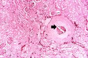 | 17:01, 19 August 2013 | IPLab4AtheromatousEmboli4.jpg (file) | 78 KB | This higher-power photomicrograph of one of the arcuate arteries reveals a cholesterol embolus. Note the needle-shaped space (arrow) within the lumen of this artery (arrow) which represents the space occupied by the cholesterol crystal that was dissolv... | 1 | |