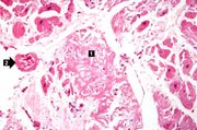 | 20:24, 20 August 2013 | IPLab6SenileAmyloidosis3.jpg (file) | 81 KB | This is a higher-power photomicrograph of the heart tissue from this case. Note the amyloid deposition throughout the myocardium (1) as well as deposition in the wall of the blood vessel (2). | 1 | |