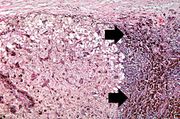 | 01:41, 21 August 2013 | IPLab7ColonCA3.jpg (file) | 60 KB | This photomicrograph of the surgical specimen shows the transition between normal mucosa on the left and carcinoma which is invading the wall of the bowel (arrow). | 1 | |