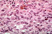 | 01:57, 21 August 2013 | IPLab7Melanoma8.jpg (file) | 76 KB | This is a high-power photomicrograph of the main tumor mass showing the cellular details. The individual melanoma cells contain large nuclei with irregular contours having chromatin clumped at the periphery of the nuclear membrane and prominent red (eo... | 1 | |