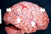 | 03:46, 21 August 2013 | IPLab9BacterialMeningitis2.jpg (file) | 30 KB | This is a low-power photomicrograph of brain section. Note the exudate (1) in the meninges and congestion of the vessels (2) in the leptomeninges. | 1 | |