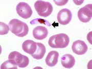 | 04:54, 21 August 2013 | IPLab11Malaria2.jpg (file) | 36 KB | This is another high power photomicrograph of a thin smear of blood from this patient. There is a single eosinophil in this smear along with several RBCs containing ring stage trophozoites (arrows). | 1 | |