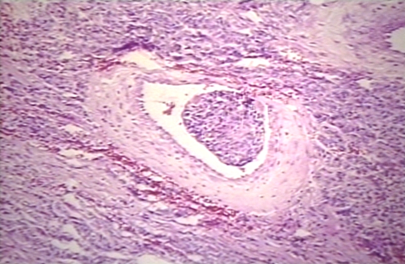 HISTOLOGY: NERVOUS: BRAIN: MENINGIOMA, MALIGNANT; TUMOR IN VESSEL
