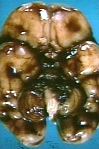 GROSS: NERVOUS: BRAIN: HEMORRHAGE, GERMINAL MATRIX WITH EXTENSION INTO SUBARACHNOID SPACE; COMPATIBLE WITH TERMINAL VEIN HEMORRHAGE