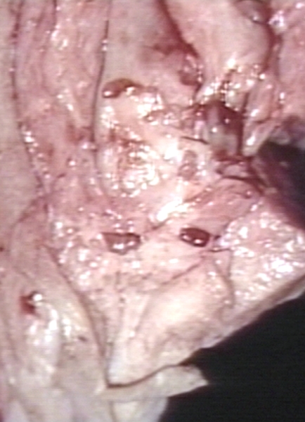 GROSS: UTERUS: ENDOLYMPHATIC STROMAL MYOSIS; 8.41 NOTE RED, WORM-LIKE AREAS OF TUMOR IN MYOMETRIUM